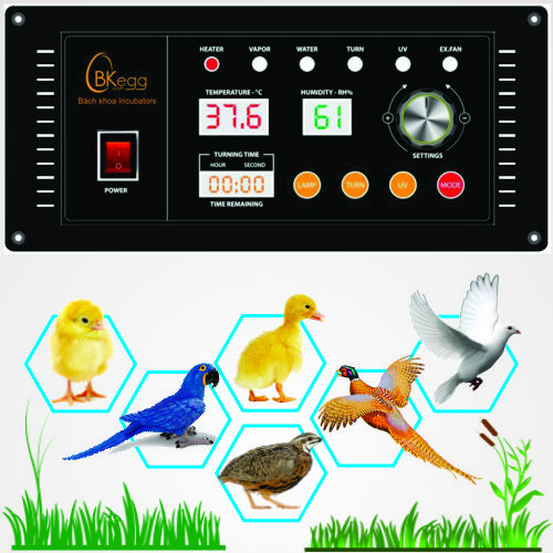 Bộ điều khiển ấp trứng │ Motor đảo trứng │ Điện trở Gia nhiệt - Tạo ẩm │ Đèn soi trứng │ Khay ấp trứng...được sản xuất và nhập khẩu theo Tiêu chuẩn Máy ấp trứng Bách Khoa.