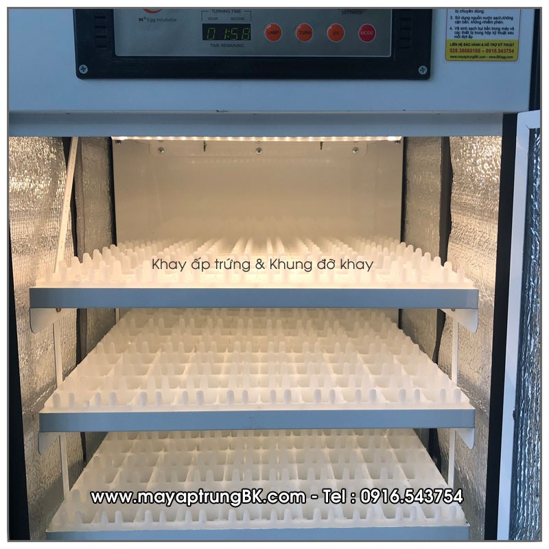 Bộ điều khiển ấp trứng │ Motor đảo trứng │ Điện trở Gia nhiệt - Tạo ẩm │ Đèn soi trứng │ Khay ấp trứng...được sản xuất và nhập khẩu theo Tiêu chuẩn Máy ấp trứng Bách Khoa.